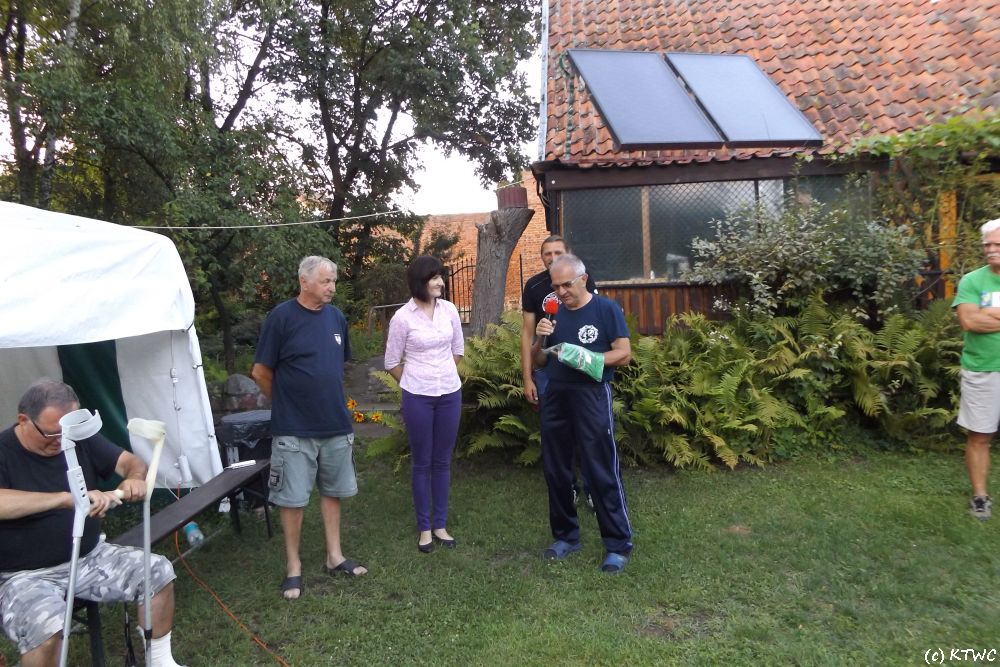 Po przebudzeniu na uczestników był przygotowany przez gminę autokar, który zawiózł chętnych na wycieczkę po rejonie. Wyprawę rozpoczęliśmy od Muzeum Ziemi Dobrzyńskiej w Rypinie. Oprowadzał nas przewodnik, który przedstawił historię powstania, losy i dzieje miasta podczas II wojny światowej oraz system edukacji, gdzie siedząc w ławkach z kałamarzami w specjalnie przygotowanej Sali mogliśmy lepiej poczuć klimat. Następnie udaliśmy się kościoła Najświętszego Serca Jezusa Chrystusa w Rypinie w którym są największe wykonane witraże w Europie i drugie na świecie przez lokalnych artystów. Po wysłuchaniu historii powstawania i podziwianiu obrazów szklanych kolejnym etapem był drewniany kościół św. Barbary w Chrostkowie. Następnie przyjechaliśmy do sanktuarium Matki Boskiej Skępskiej znajdujący się w Skępe. Zakonnik opowiedział historię obiektu oraz pokazał największą atrakcję, figurkę Matki Bożej Skępskiej. Ostatnim celem wycieczki były ruiny zamku w Bobrownikach. Po skończonej wyprawie zostaliśmy zaproszeni na obiad. Po powrocie na obozowisko odbył się tradycyjny chrzest wodniacki, wśród których udało nam się ochrzcić Kingę Marcinkowską podinspektora ds. promocji Urzędu Gminy Ciechocin.